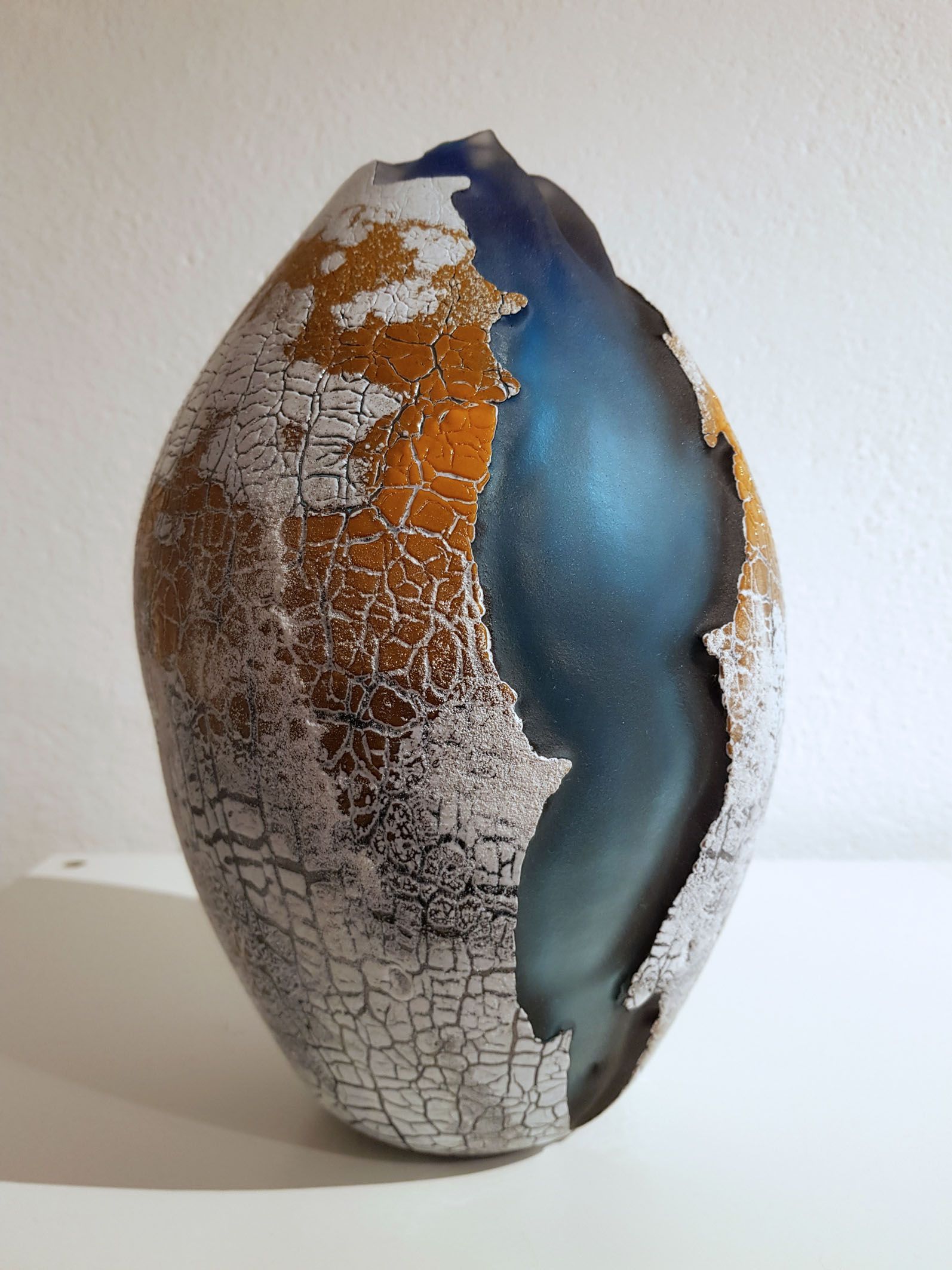 Ils explorent la matière, ils honorent son mystère. Ils se rencontrent à Dully, dans une étonnante harmonie, entre douceur et fulgurance. Pascal Lemoine souffle le verre, JiPé peint son univers, dans un respectueux esprit de leur duo éphémère (Claire Raffenne, historienne de l'art, Accrochages n° 270)